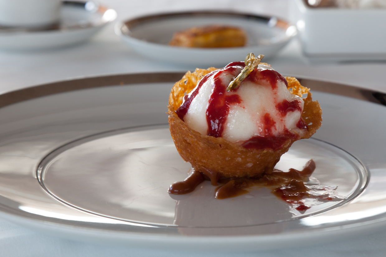 celeste, com a acidez do gelado a controlar a riqueza de ovos e açúcar deste ex-libris conventual escalabitano, confesso que o conjunto gelado de melão/crocante me soube pouco subtil. Preferências...